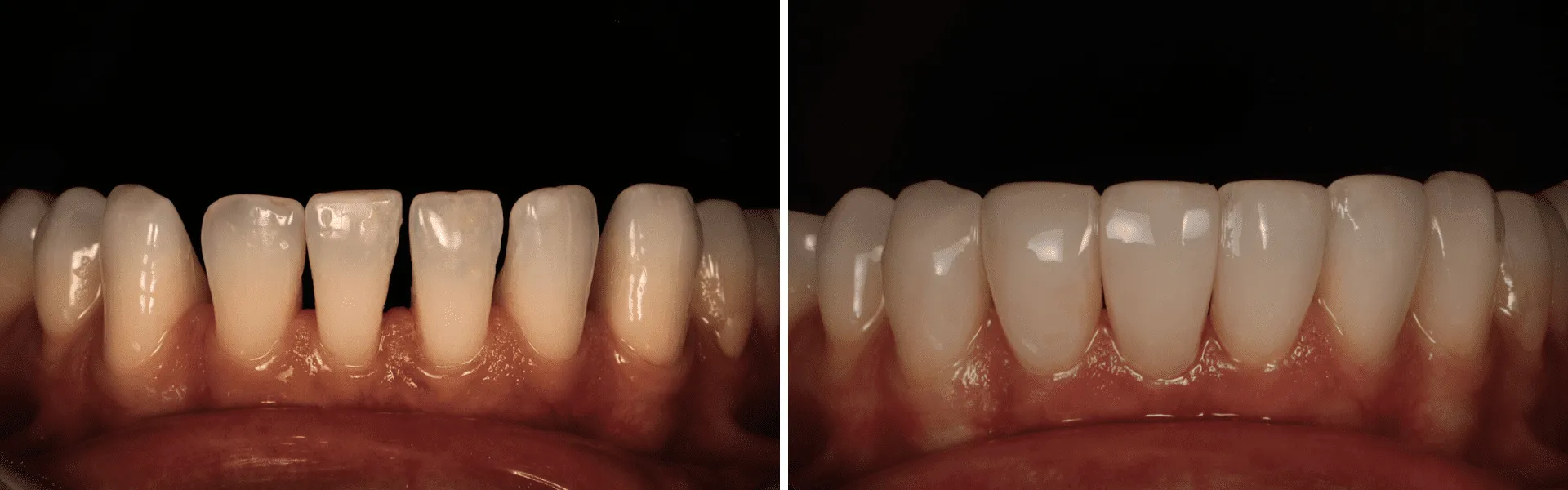 Assim, numa única consulta e preservando totalmente a estrutura dentária, a Dr.ª Daniela Paiva — através de restaurações diretas — conseguiu anular os espaços inestéticos entres os dentes e devolver um sorriso mais harmonioso à nossa paciente.